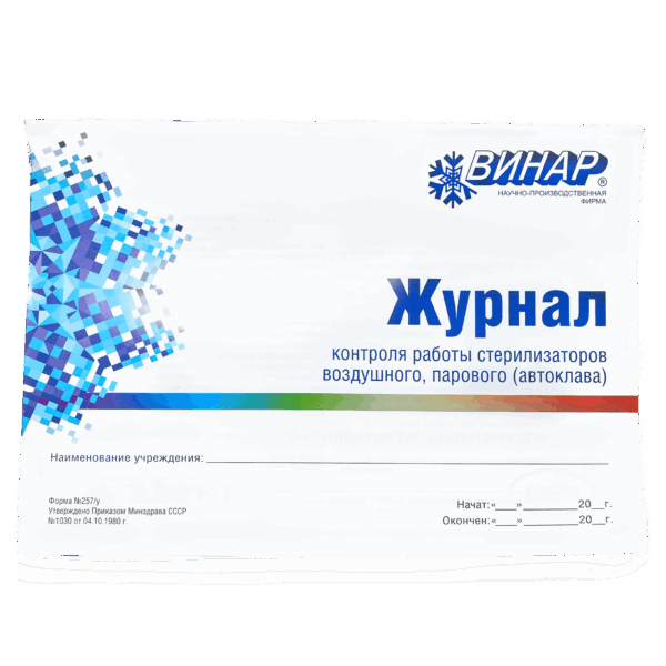 Журнал контроля работы стерилизаторов воздушного, парового (автоклава), форма №257/у. Журнал предназначен для регистрации контрольных замеров работы аппаратуры. Контроль стерильности изделий