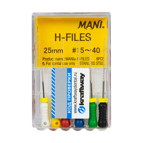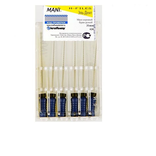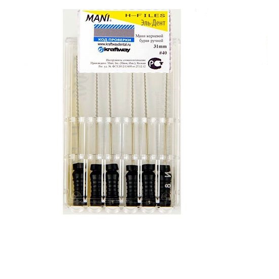 H-Files (Н файлы Мани) — это корневые буравы ручные. Ручной режущий стоматологический эндодонтический инструмент со спиральной нарезкой рабочей части. Материал