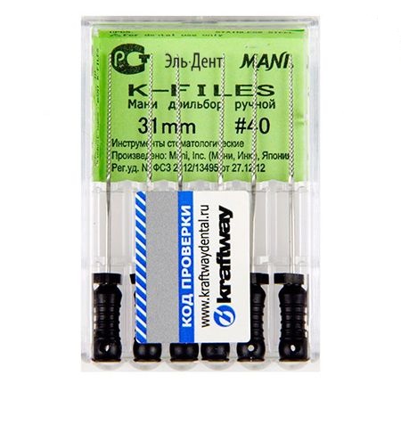K-Files MANI (К файлы Мани) — это ручной режущий стоматологический эндодонтический инструмент со спиральной нарезкой рабочей части. Материал рабочей режущей