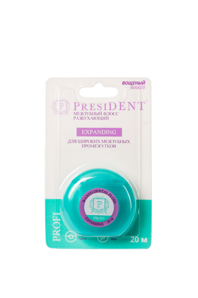 Межзубный флосс (вощеный) с хлоргексидином PRESIDENT Antibacterial удаляет остатки пищи и налет между зубами, борется с бактериями, вызывающими кариес и