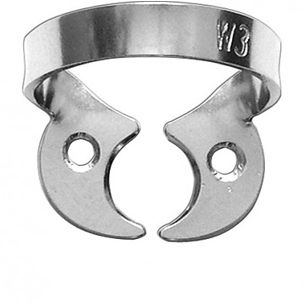 Кламп № 13А — асимметричный кламп с горизонтальными зазубренными «челюстями» (tiger-тип), правосторонний, для верхних моляров с треугольной формой коронки, наиболее