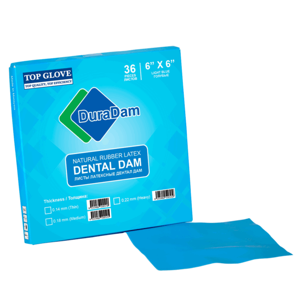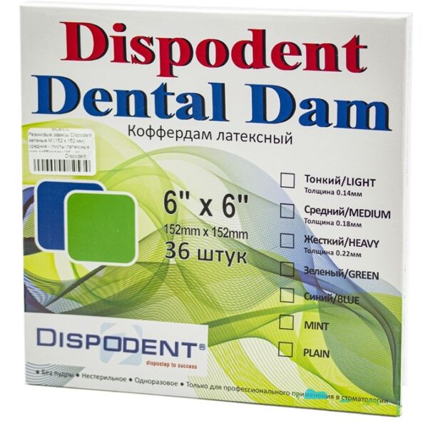 Неопудренный коффердам Dispodent Dental dam из латекса с низким содержанием протеина и жиров. Производитель: Малазия. Растительные протеины и жиры являются