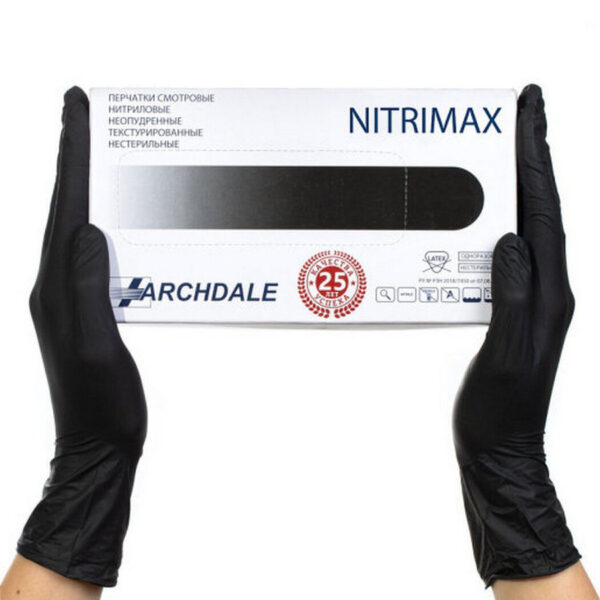 Перчатки смотровые неопудренные нитриловые черные. Текстурированная поверхность на пальцах, цвет черный, форма плоская, манжета с валиком, гипоаллергенные, нестерильные. Для выполнения