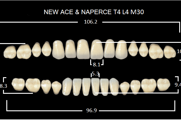 Зубы акриловые двухслойные, полный гарнитур, 28шт. Gloria цвет. B1, Фронтальные-T4, боковые-М30