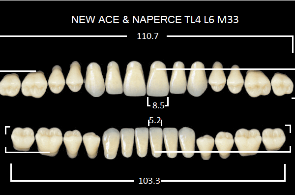 Зубы акриловые двухслойные, полный гарнитур, 28шт. Gloria цвет. A3, Фронтальные-TL6, боковые-М33