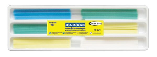 Полоски шлифовальные. Универсальный набор 75 шт. для снятия излишков материала (№ HK1.050) 25 шт. для предварительного шлифования (№ HK1.051) 25 шт. для полирования (№ HK1.052) 25 шт.