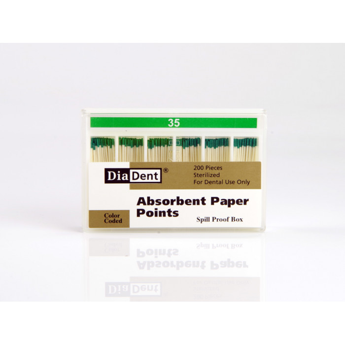 Штифты эндоканальные абсорбирующие бумажные предназначены для высушивания корневого канала. Размер №35, конусность 02. В упаковке 200 шт. Изготовлены из стоматологической бумаги и выпускаются стерильными.