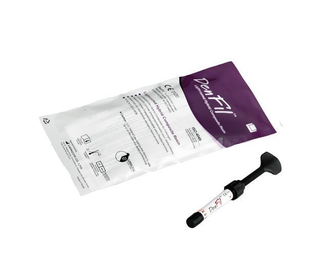 Denfil (Денфил) – светоотверждаемый микрогибридный универсальный композит с высоким содержанием неорганического наполнителя (массовая доля 80%). Пакуемый, рентгеноконтрастный. За счет высокого содержания наполнителя обладает минимальной полимеризационной усадкой. Удобный в работе, не прилипает к инструменту, хорошо держит форму. Широкая цветовая палитра позволяет быстро создавать эстетичные реставрации. Имеет длительный опыт клинического применения демонстрируя превосходные отдаленные результаты. Рекомендован к использованию в ежедневной практике врача-стоматолога.