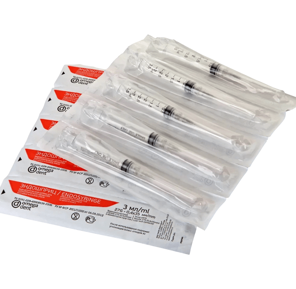 Шприц со специальным замком (Luer lock), обеспечивающий надёжное соединение и фиксацию иглы. Применяются для орошения корневых каналов зубов ирригационными растворами при проведении эндодонтического лечения.