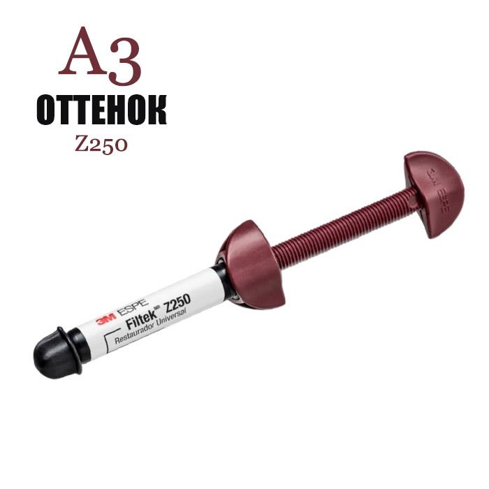 Дозатор, заполненный пломбировочным материалом Filtek Z250 оттенка A3 (1 шт., 4 г). Микрогибридный композитный материал для восстановления по двухопаковой методике. Прямая и непрямая реставрация I-V класса во фронтальных и жевательных зубах. Вкладки, накладки, виниры. Сэндвич-техника. Надстройка культи. Шинирование. Высокая прочность. Высокая износоустойчивость. Низкая усадка. Восстановление как фронтальных, так и жевательных зубов.