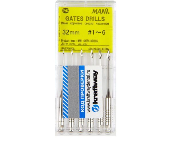 HomeКаталогЭндодонтияИнструменты эндодонтические Гейтс Дрили №1-6 ассорти 6шт, Мани
