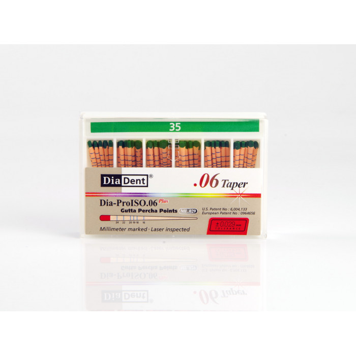 Штифты гуттаперчевые, конусность 06, размер 35, 60 шт. Предназначены для пломбирования корневых каналов. Преимущества: точная установка на рабочую длину, нет необходимости отмечать длину на штифтах, выбор размеров. Технические характеристики: плотные штифты сделанные из гомогенной, биосовместимой, натуральной гуттаперчи; отличная пластичность для латеральной, вертикальной и горячей конденсации; высокая стабильность и гладкая поверхность для легкого введения в канал; цветокодирование по системе ISO; высокая рентгеноконтрастность; высокая точность размеров