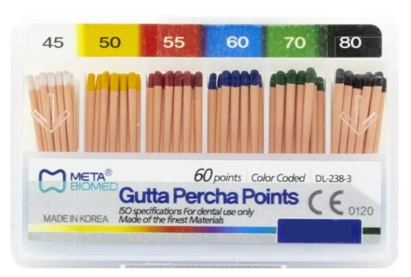 Конусность 04, размер № 45-80. Упаковка 60 шт. Штифты гуттаперчевые. Эндодонтические штифты для ручного использования, которыми заполняют корневой канал в процессе его пломбирования. Штифт гибкий и податливый, но достаточно жесткий, легко вставляется в канал. Подходит для вертикальной и латеральной конденсации. Отличная видимость на рентгеновском снимке. Длительный срок хранения.