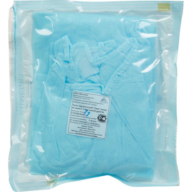 Халат хирургический стерильный «Евро» голубой (размер 52 — 54) Инмедиз