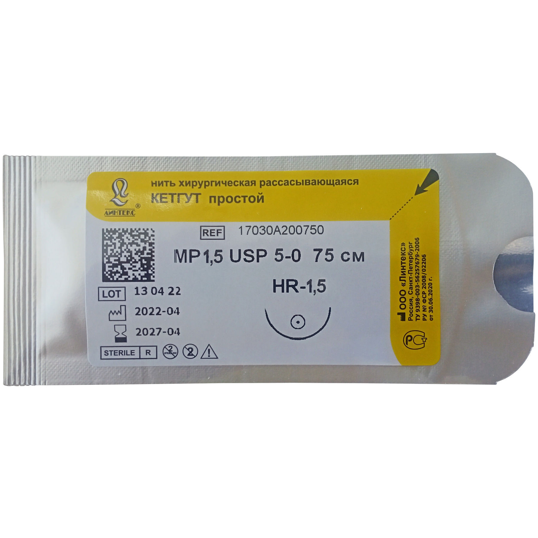 HomeКаталогХирургия и пародонтологияШовный материал Кетгут нить L=75см, USP 5-0, 15мм. Волоть