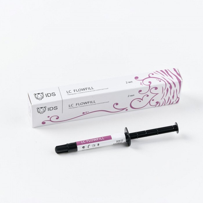 LC FLOWFILL от производителя IDS – светоотверждаемый текучий микрогибридный композит для реставраций передних зубов и некоторых реставраций жевательных, а также для создания изолирующего слоя.