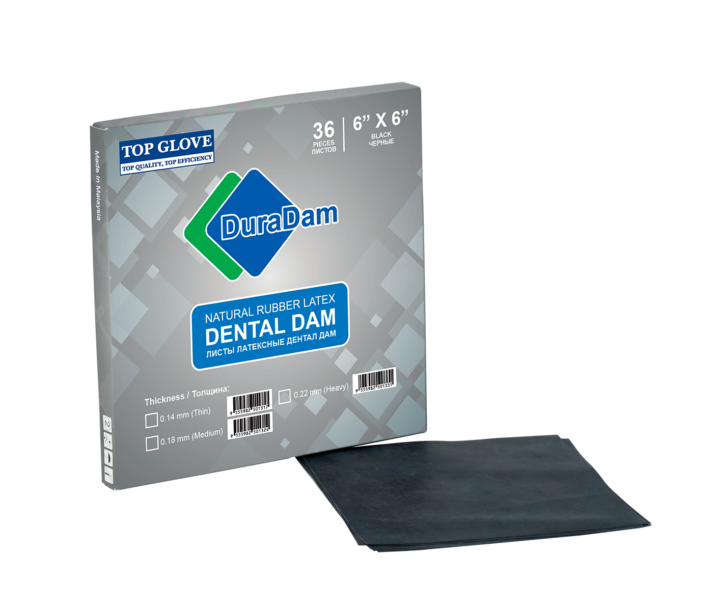 Латексные листы DURADAM используются для изоляции рабочего поля при обработке зубов, установке пломб и других врачебных манипуляциях в полости рта, при использовании системы коффердам / раббердам.