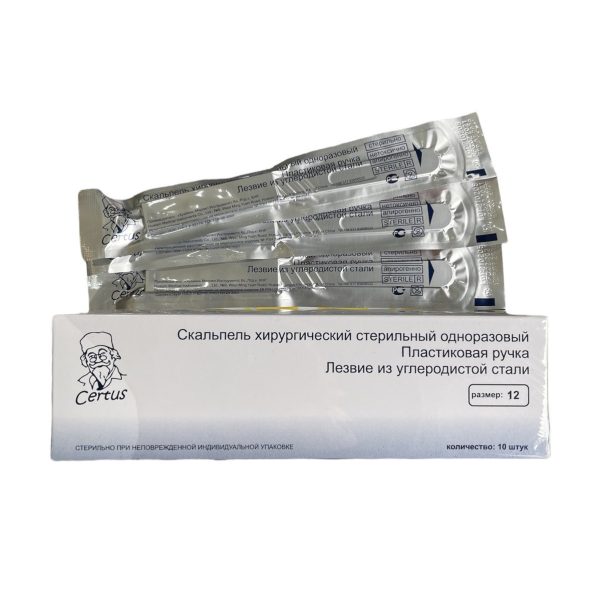 Скальпель с ручкой одноразовый размер 12, Certus