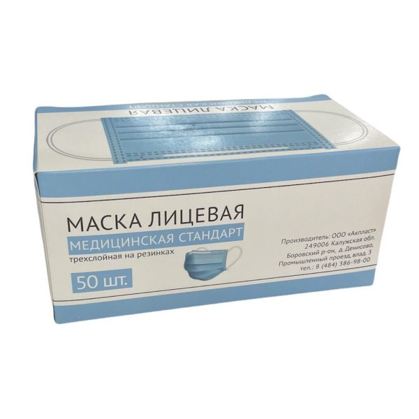 Маска лицевая медицинская одноразовая трехслойная, на резинках. В коробке 50 шт. Показания к применению: • Медицинская маска — это одноразовое