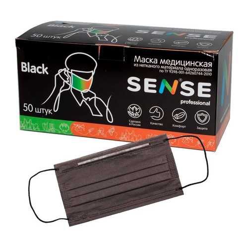 Маски на резинках SENSE черные (50 шт)
