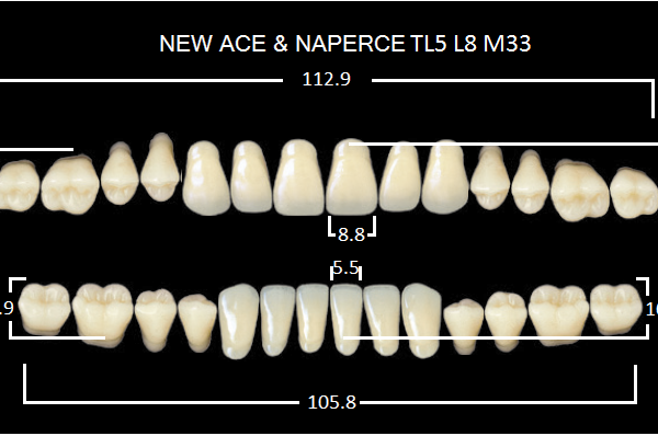 Зубы акриловые двухслойные, полный гарнитур, 28шт. Gloria цвет. A3, Фронтальные-TL5, боковые-М33