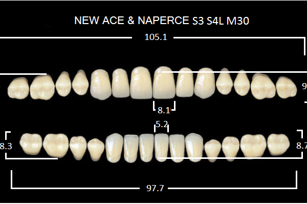 Зубы акриловые двухслойные, полный гарнитур, 28шт. Gloria цвет. A3,5, Фронтальные-S3, боковые-М30