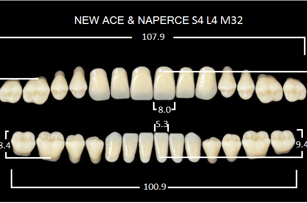 Зубы акриловые двухслойные, полный гарнитур, 28шт. Gloria цвет. A3, Фронтальные-S5, боковые-М32