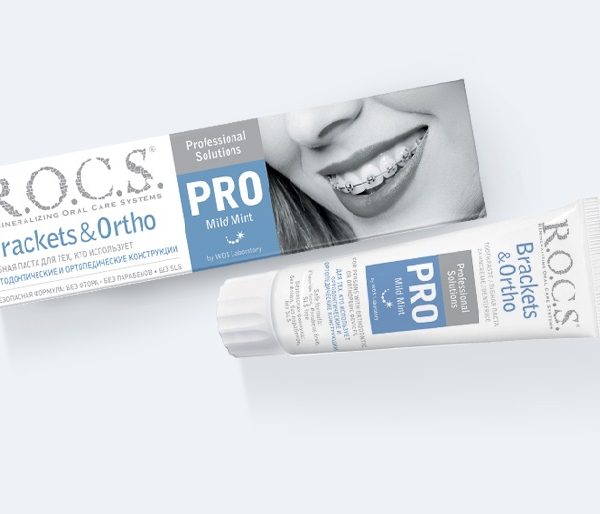 Зубная паста R.O.C.S.® PRO Brackets & Ortho – это модифицированная формула зубных R.O.C.S.® PRO «Деликатное отбеливание» со специальными гранулами, усиливающими