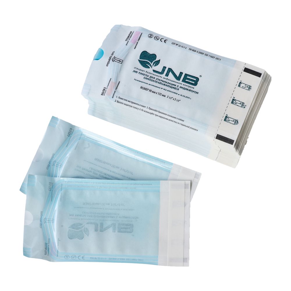 JNB Пакеты для стерилизации с индикатором, 90мм х 135мм, самозапечатывающиеся.
