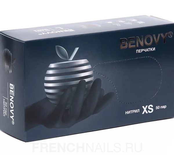 Перчатки "Benovy" размер XS нитрил черные, 50пар 365,00 руб.