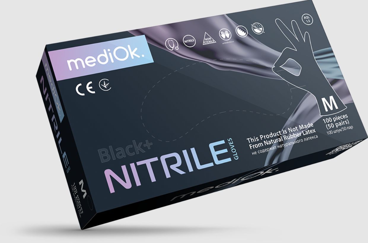 Перчатки «Mediok» размер M нитрил черные, 100шт