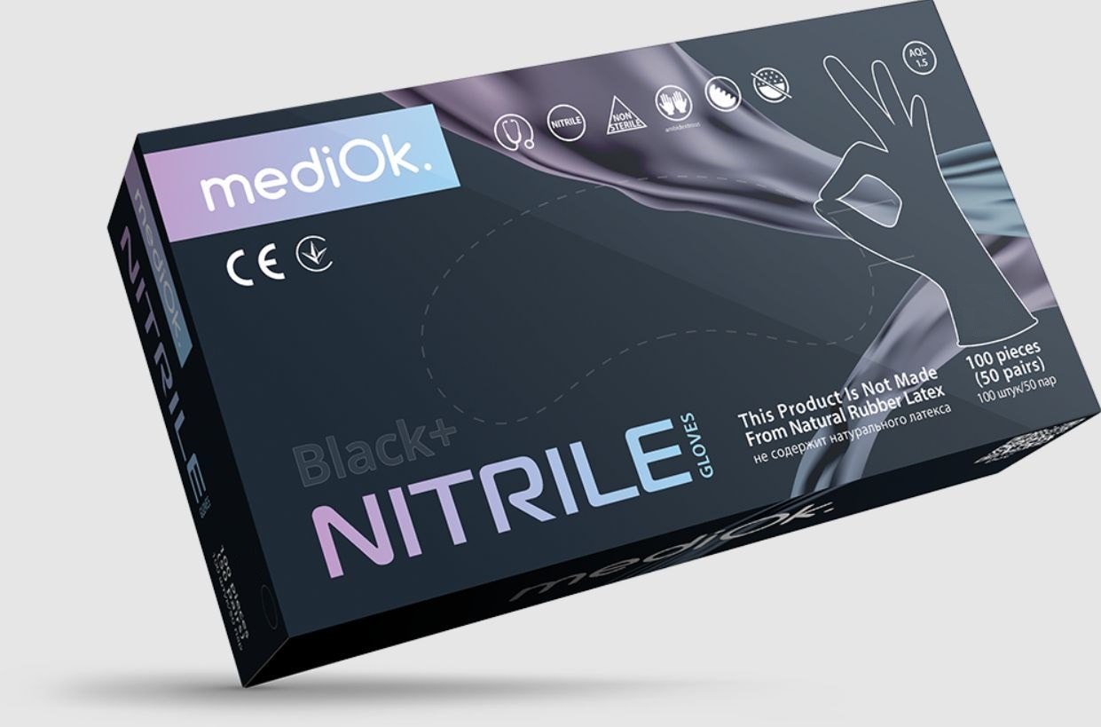Перчатки «Mediok» размер S нитрил черные, 100шт