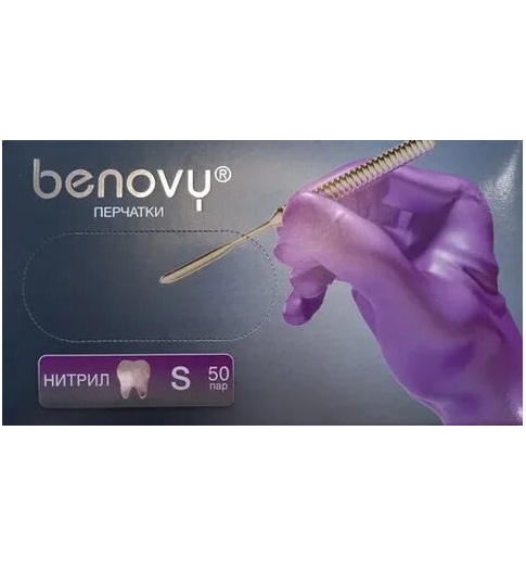 Перчатки «Benovy» размер S нитрил фиолетово-голубой, 50пар