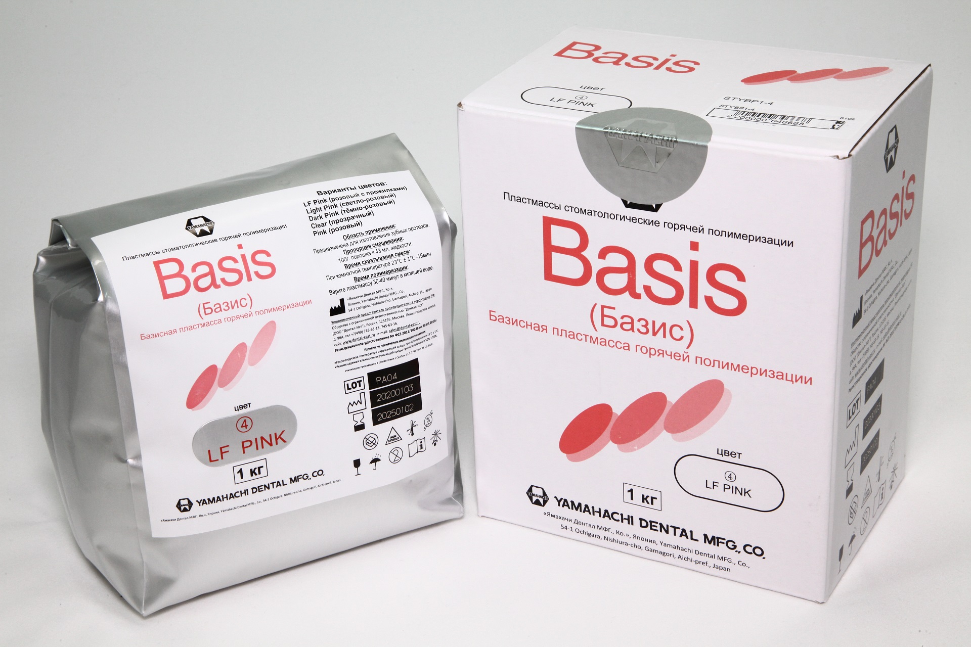 Пластмасса Basis горячей полимеризации, порошок 1кг, цвет LF Pink ( розовый с прожилками) YAMAHACHI