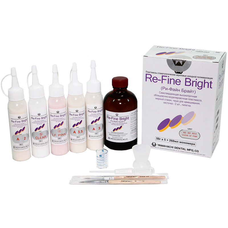RE-FINE BRIGHT SET №2 (5+1)-НАБОР 50ГХ5 (А2,А3,А3,5,CLEAR, LF PINK)+260МЛ МОНОМЕРА, АКСЕССУАРЫ