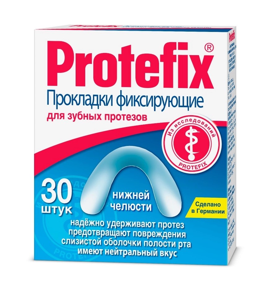 Фиксирующие прокладки Protefix® (Протефикс) для протезов верхней и нижней челюстей прежде всего рекомендуются врачом на этапе привыкания больного к протезу. Особенно эффективны прокладки при неблагоприятном строении челюсти, при возрастной деформации десен, а также при атрофии альвеолярного отростка челюсти.