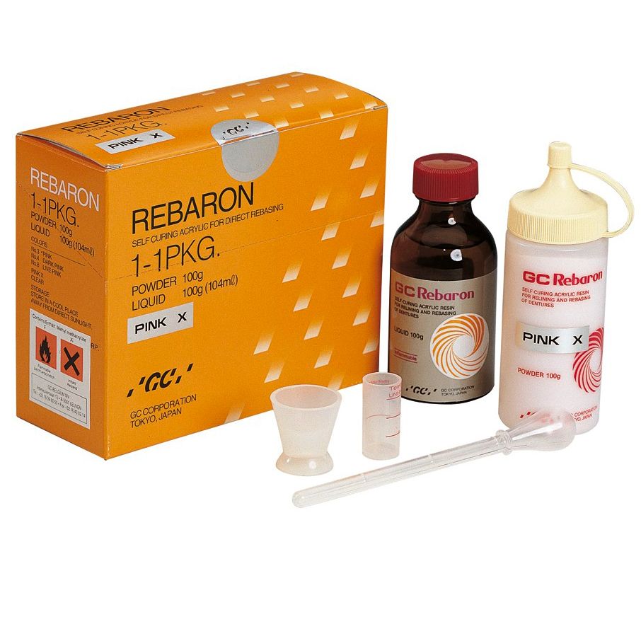 ДЖИ СИ Ребарон — Акриловая пластмасса для жесткой долгосрочной перебазировки частичных и полных съёмных протезов прямым методом.