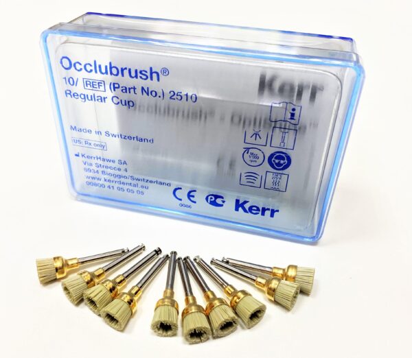 Щеточка Occlubrush Regular стандартная чашечка – щеточки, использующиеся для быстрой полировки до зеркального блеска окклюзионных и вогнутых поверхностей реставраций из композитов, компомеров, стеклоиономеров и керамики, а также для профилактической обработки.
