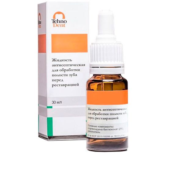 Спиртовой раствор Хлоргексидина 2% — предназначен для антисептической обработки препарированной полости зуба перед реставрацией.