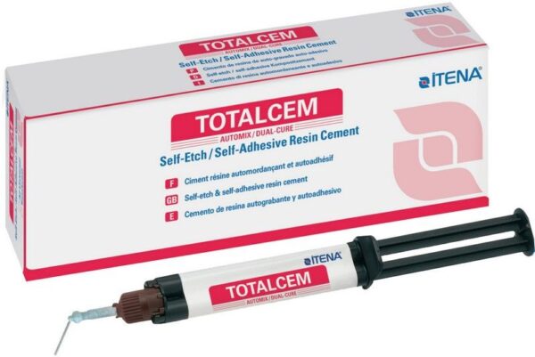 TotalCem — это самопротравливающий самоадгезивный композитный цемент для постоянной фиксации. Не требует предварительной протравки перед применением, а также использование грунтовки или связующего бондинга – все включено в единый шаг нанесения Totalcem! Прочность фиксации в 3 раза выше чем у стекло-иономерного цементного композита. TotalCem идеален в применении для фиксации зубных штифтов, коронок, мостов, а также пломб и виниров. Гелеобразная структура способствует легкому удалению излишков материала. Самоотверждение композита способствует его практичному применению особенно в труднодоступных для светополимеризации участках полости рта. Удобный и надежный TotalCem успешно позволяет экономить драгоценное время стоматологов по всему миру.