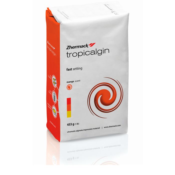 Материал стоматологический слепочный Tropicalgin — хроматический, трехфазный беспыльный альгинат с быстрым схватыванием, разработанный для универсального применения. Предназначенный для легкого и мгновенного снятия оттисков, он широко используется во всех специализациях стоматологической практики: протезирование, ортодонтия, консервативная и педиатрическая стоматология, имплантология, эстетическая стоматология. Комплектность: 1 пакет весом 453 гр.