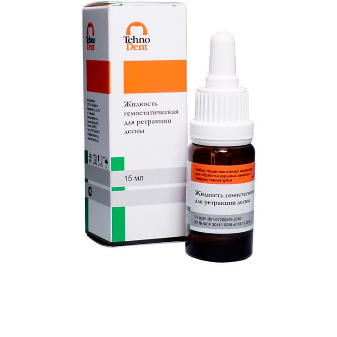 Жидкость гемостатическая, останавливающая внутриканальное кровотечение и устраняющая десневое просачивание, содержит алюминия хлорид гексагидрат (25 %). Применение жидкости обеспечивает ретракцию десны при лечении пришеечного кариеса.