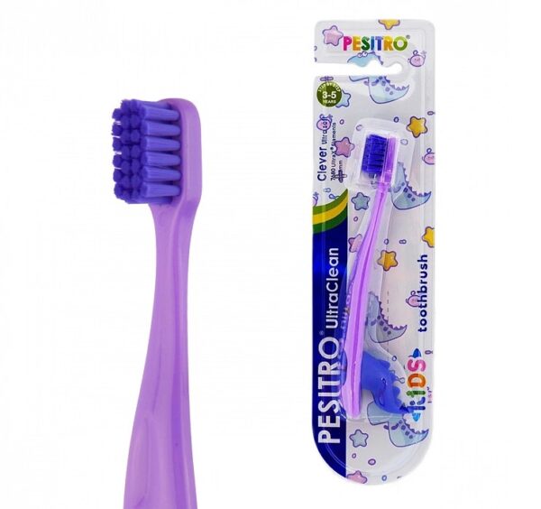 Зубная щетка детская PESITRO® UltraClean® Clever предназначена для детей возрастом от 3 до 5 лет. Очень мягкая щётка с подставкой в виде хвостика Динозавра идёт вместе с колпачком в комплекте. Интересный дизайн превратит ежедневные процедуры для малыша в настоящую игру!