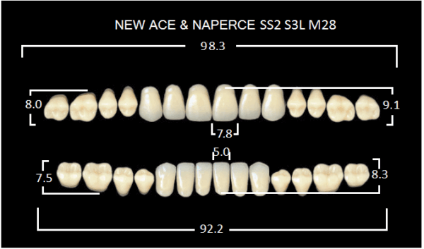 Зубы акриловые двухслойные, полный гарнитур, 28шт. Gloria цвет. A1, Фронтальные-SS2, боковые-М28