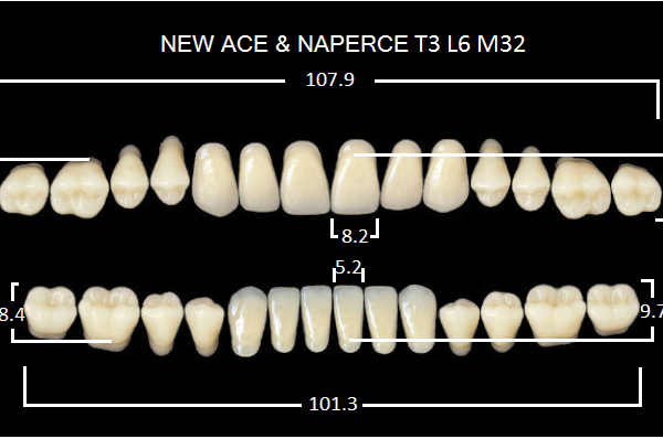 Зубы акриловые двухслойные, полный гарнитур, 28шт. Gloria цвет. A1, Фронтальные-T5, боковые-М32