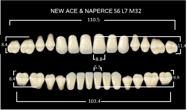 Зубы акриловые двухслойные, полный гарнитур, 28шт. Gloria цвет. A2, Фронтальные-S6, боковые-М32