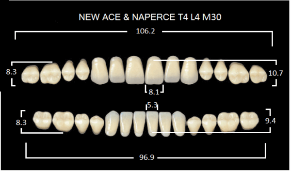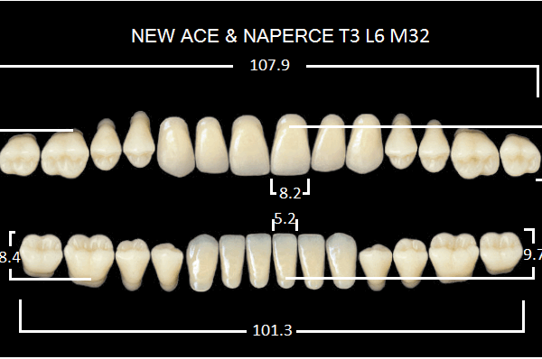 Зубы акриловые двухслойные, полный гарнитур, 28шт. Gloria цвет. A3, Фронтальные-T4, боковые-М30