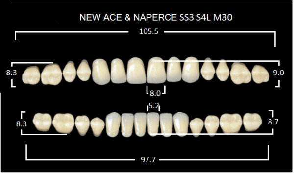 Зубы акриловые двухслойные, полный гарнитур, 28шт. Gloria цвет. B1, Фронтальные-SS3, боковые-М30