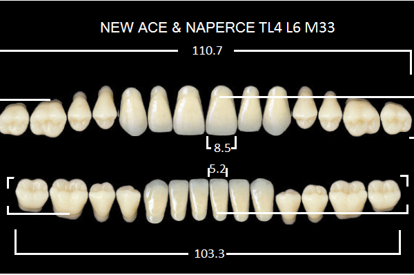 Зубы акриловые двухслойные, полный гарнитур, 28шт. Gloria цвет. A1, Фронтальные-SS3, боковые-М30