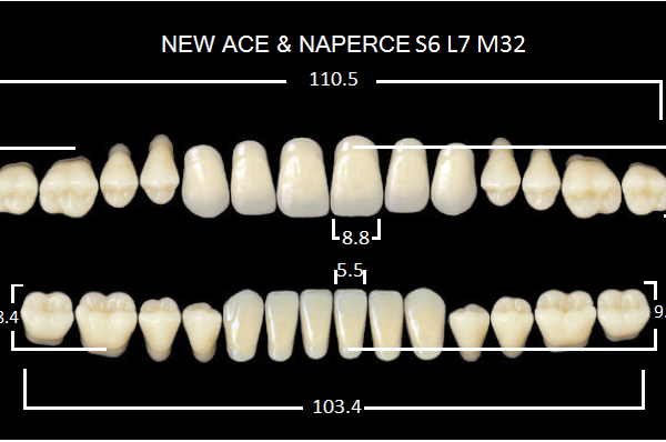 Зубы акриловые двухслойные, полный гарнитур, 28шт. Gloria цвет. A1, Фронтальные-S5, боковые-М32